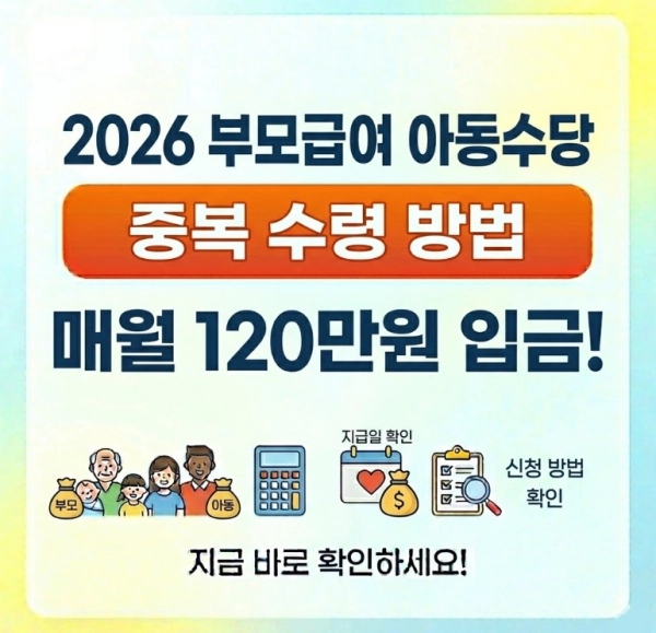 2026 부모급여 아동수당 중복 수령이 정말 가능한지, 매월 120만 원이라는 큰 혜택을 놓치지 않고 받는 방법이 궁금하신가요?