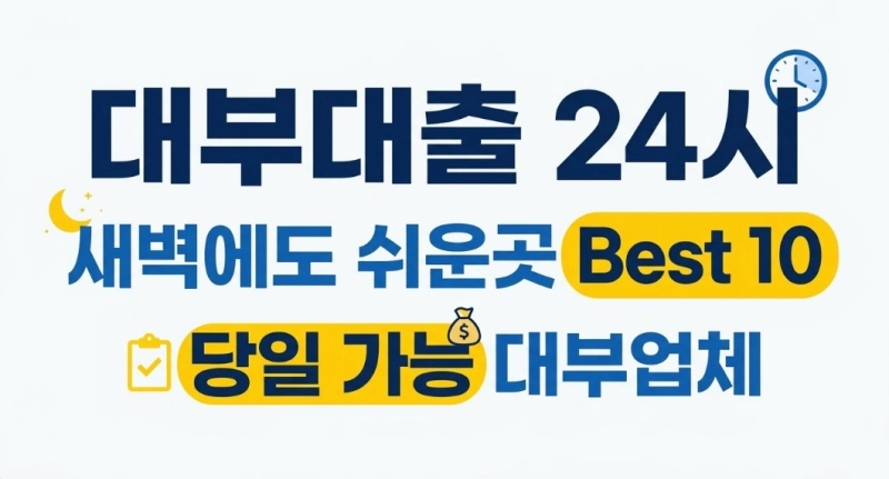 대부대출 24시 새벽에도 쉬운곳 Best 10 당일 가능 대부업체